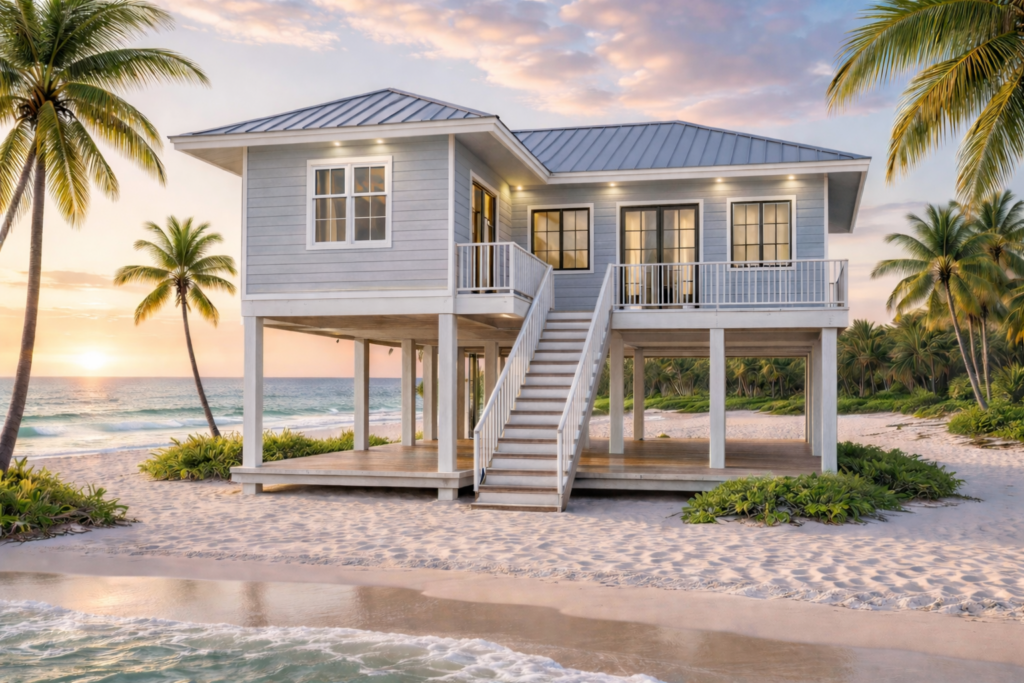 Introducing the revolutionary Sunrise Model from Florida Steel Homes—a sanctuary of strength nestled elegantly amidst the unrivaled beauty of Florida’s coastline. Crafted with an unparalleled dedication to resilience and aesthetics, this hurricane-grade home redefines safety and luxury, offering a fortress of tranquility against nature’s fiercest storms for those who aspire to hurricane-proof coastal living.